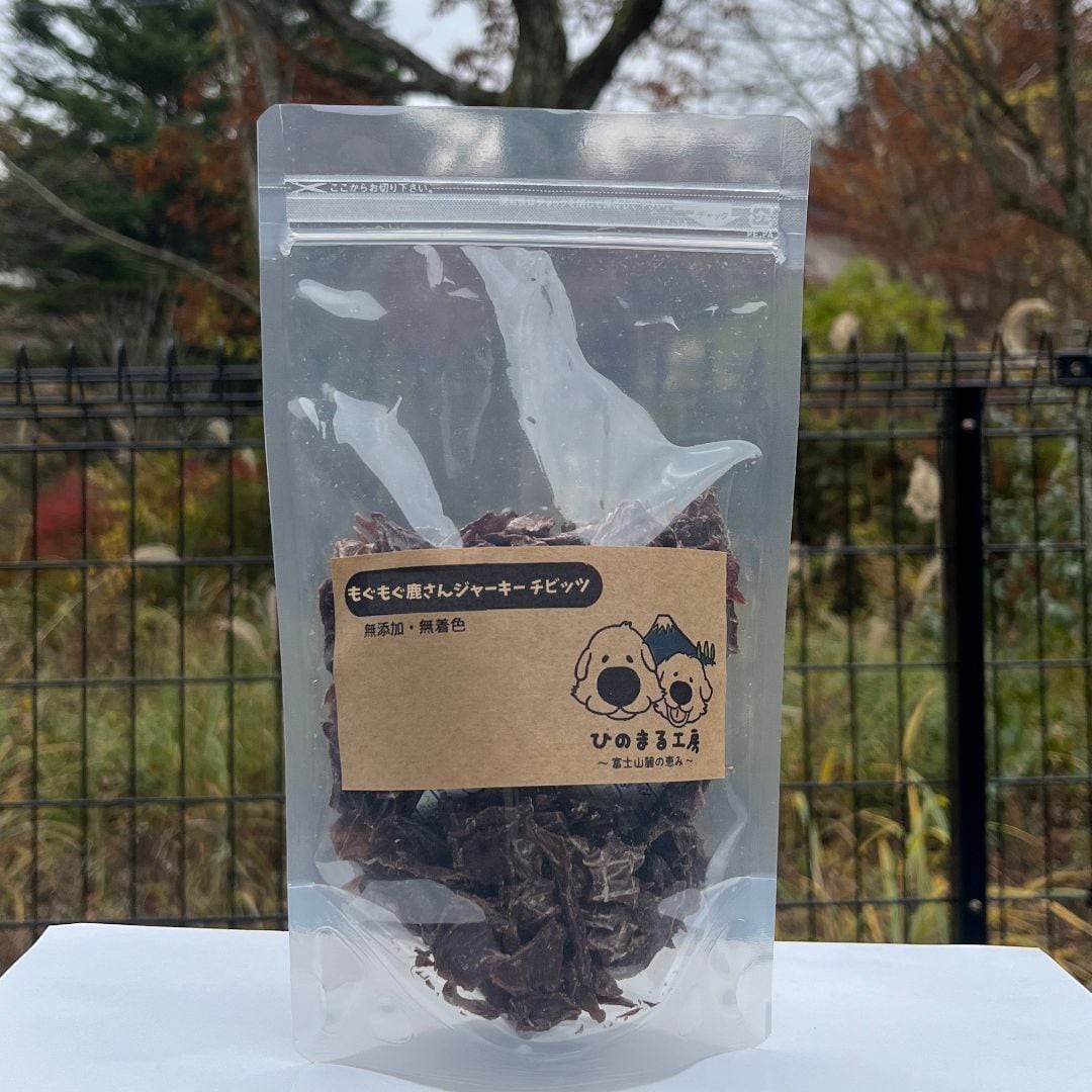 富士河口湖町産の新鮮なニホンジカを使用した無添加ジャーキーの小さめサイズ(約2cm以下)です。